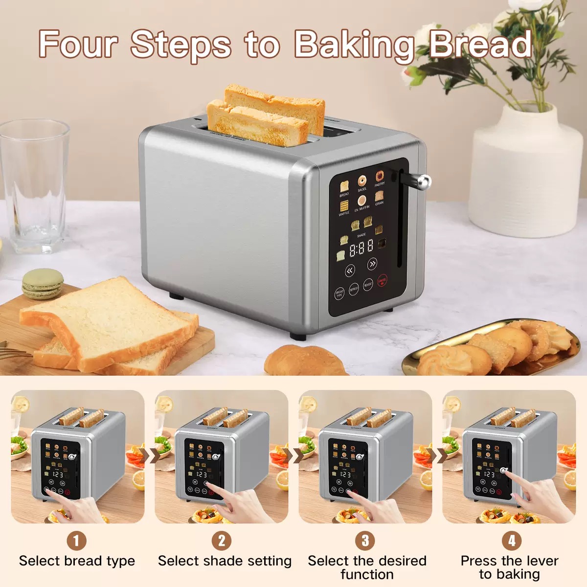 Toster z ekranem dotykowym, inteligentny toster cyfrowy ze stali nierdzewnej z podwójnymi płytami i funkcją pamięci