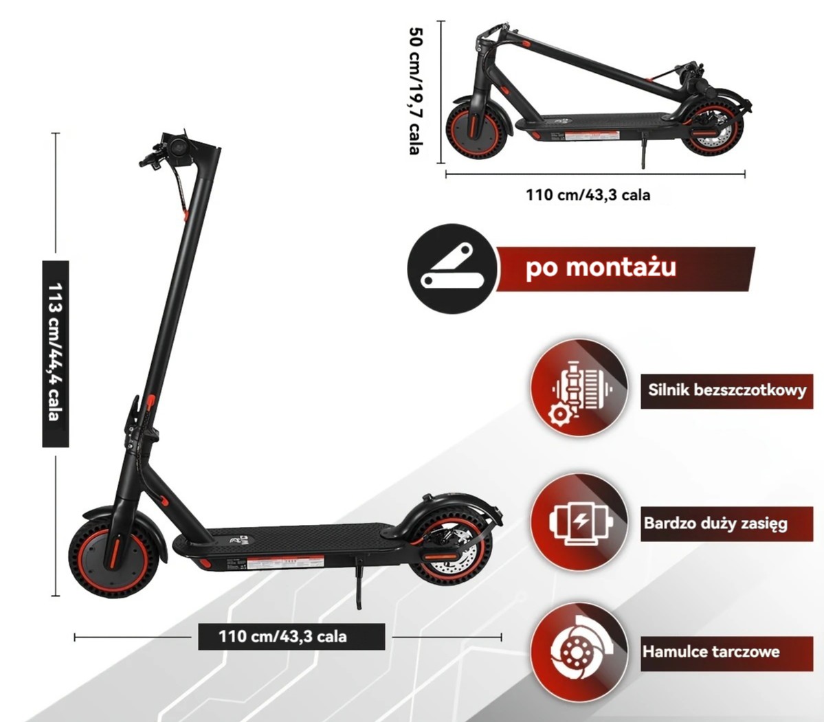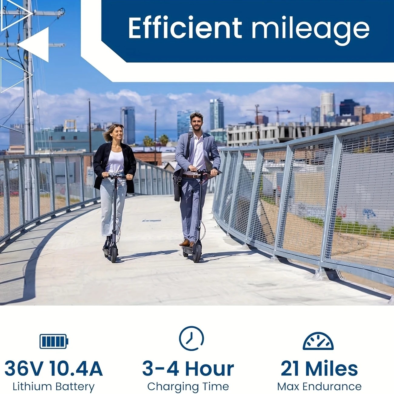 Składany Elektryczny Skuter o Przekątnej 8.5 cala z Wyświetlaczem LED, Moc Silnika 350 W, Bateria Litowa Klasy A 10.4 Ah, 3 Tryby Prędkości, Maksymalna Prędkość 19 km/h, Zasięg 15-25 km i Obciążenie do 120 kg